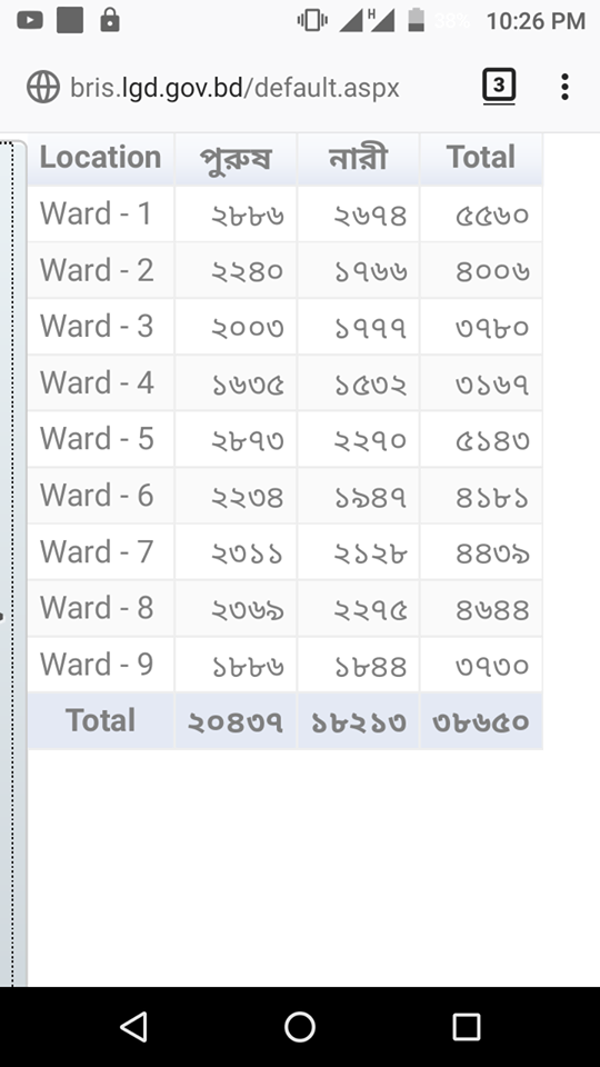 ওয়ার্ড ভিত্তিক লোক সংখ্যা